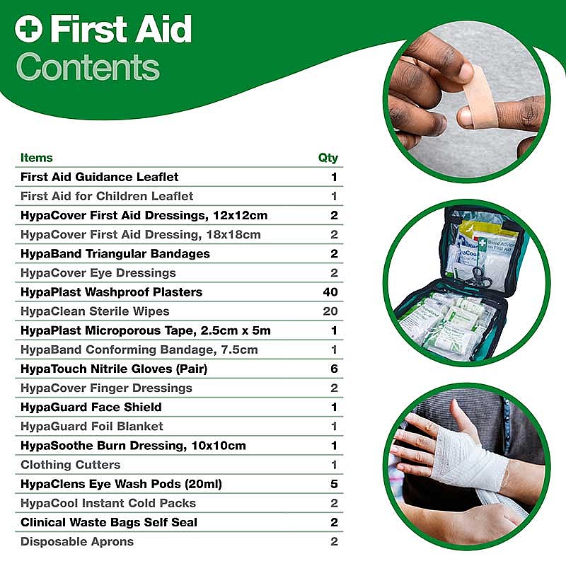 Complete kit with British Standard Compliant First Aid contents plus additional supplies for secondary schools