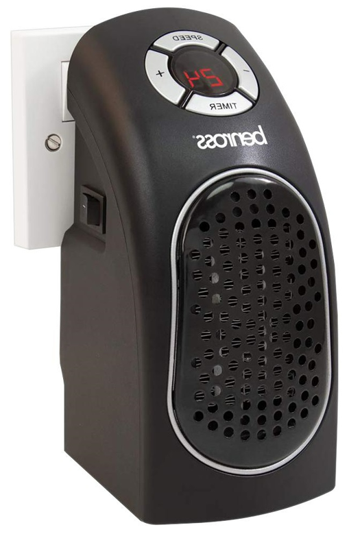 Compact fan heater that plugs directly into any mains wall socket.
