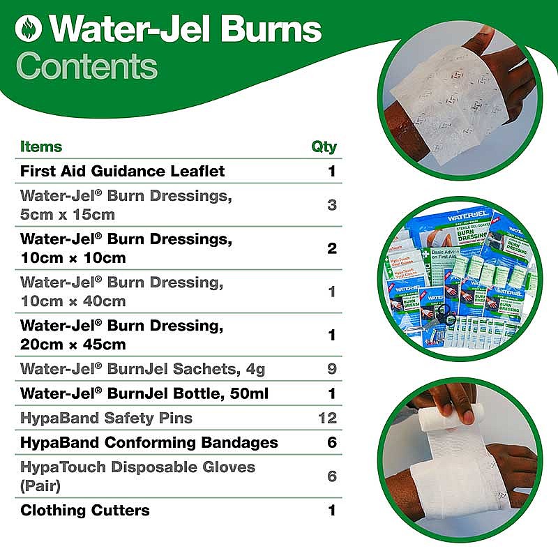 All kits include Water-Jel dressings to ensure the best treatment for burns injuries