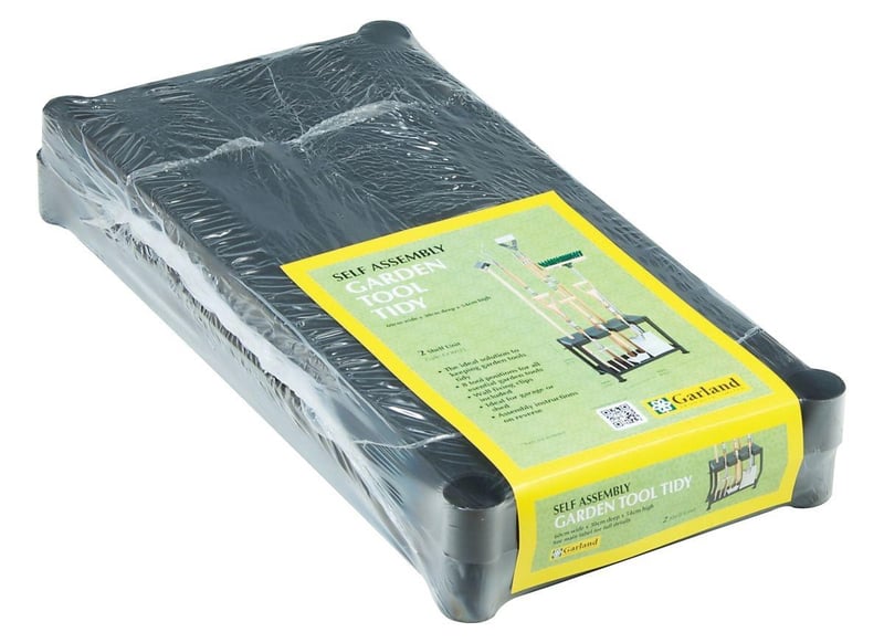 This Garden Tool Tidy is ideal for the shed or garage, it holds many common garden tools at once and is suitable for use with spades, forks, rakes, brooms etc. Its compact size ensures that tools can be easily removed even in the shed. The tool tidy is quick and easy to assemble (no tools required) or for a super secure fix you can use the clips supplied to fix the unit back to the wall (minimal tools required). We strongly recommend you screw the shelf unit back to a solid surface especially if loading them with top heavy tools. Size Check: 60cm (24") L x 30cm (12") W x 54cm (21") H