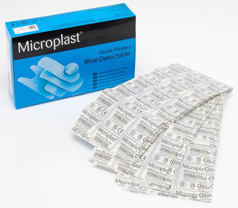 Blue detectable plasters are individually wrapped, Sterile and ideal for working in any food production environment.
