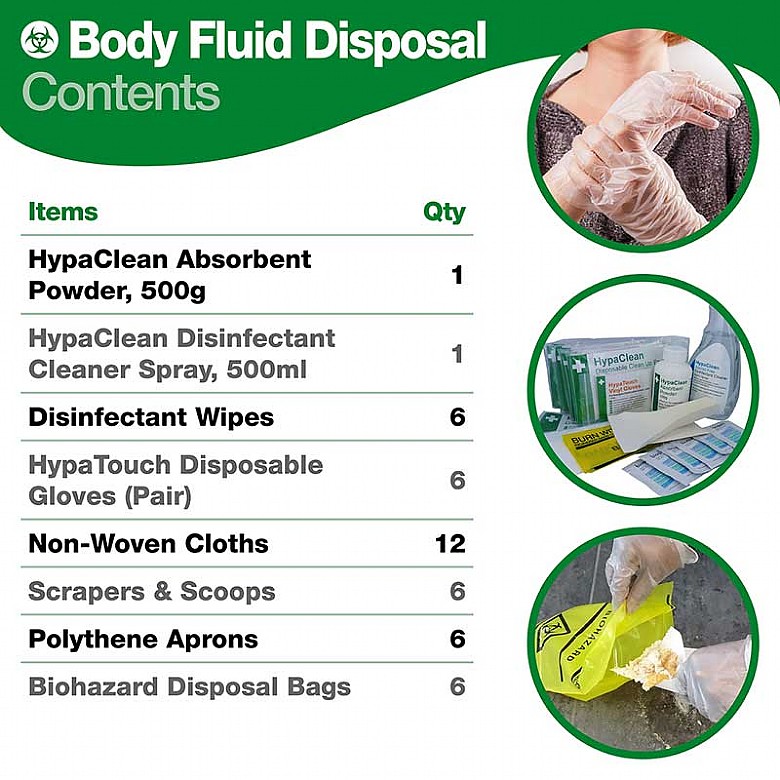 Designed for the containment and disposal of body fluid spillages