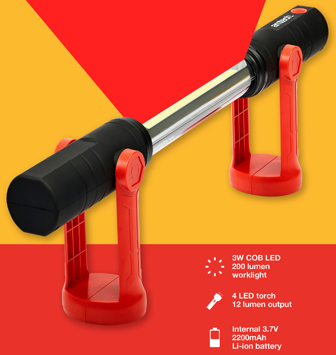 Dual Output COB LED - 180? Swivel Feet with Magnetic Mounts - Telescopic Function - Splash-proof - USB Charging Cable Included