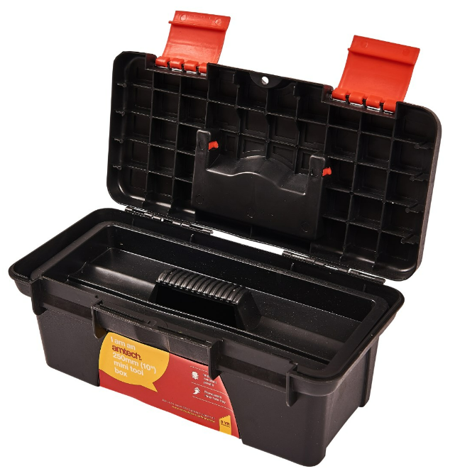 Durable Plastic Tool Box with Double Clip Closure - Removable Tray - Carry Handle - Ideal for Storing all Kinds of Tools