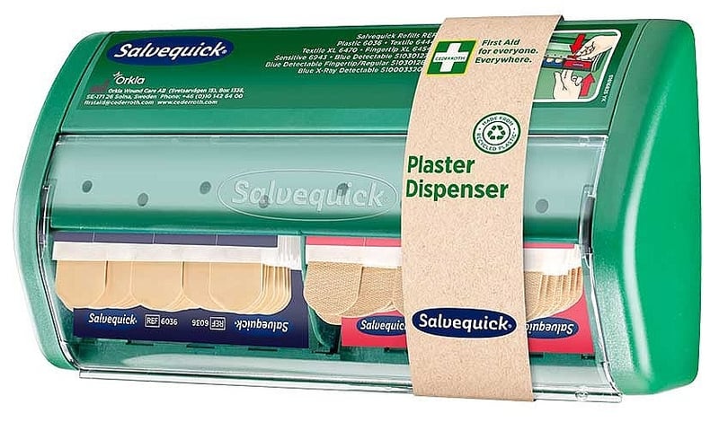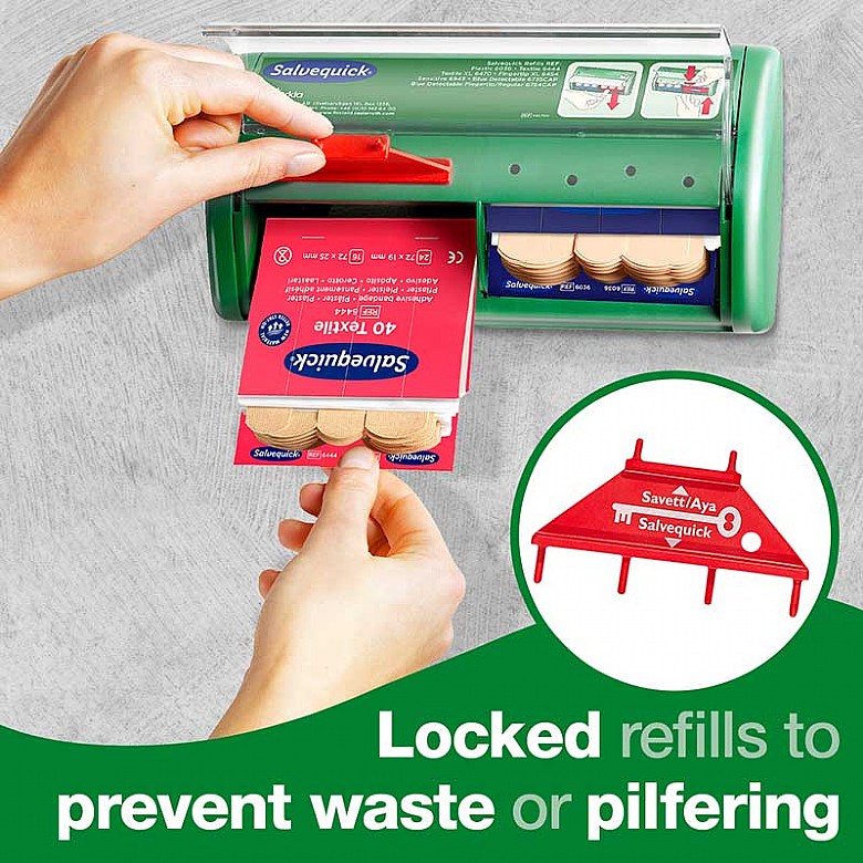 Cederroth First Aid Salvequick Pilferproof Plaster Dispenser - 40x Fabric & 45x Washproof - Size: 23 x 12 x 5.5cm