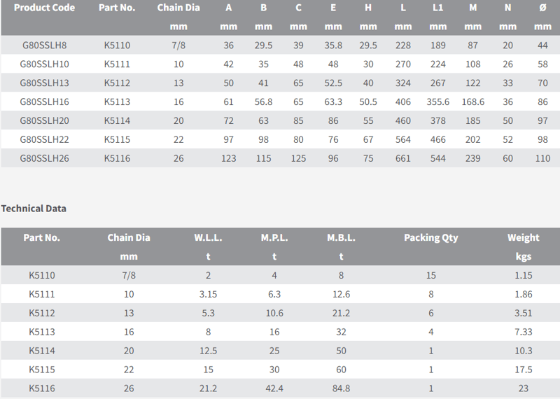 Marked with Manufacturers Identification - Tested and Certified - Size Chart Below