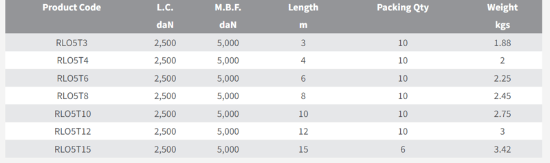 Marked with Manufacturers Identification - Tested and Certified - Conform to EN12195 - Heavy Duty Strap - 2500 daN, 5000 daN, 5t