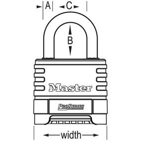 • Shackle Dimensions A: 3/8in (10mm) B: 2-1/16in (52mm) C: 15/16in (24mm)