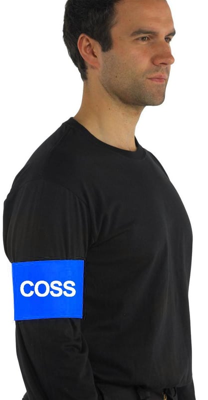 Blue - Mens Pre Printed Arm band - COSS Controller Of Site Safety - 10cm x 55cm - Single - [IH-ARMBAND-B-C-W]