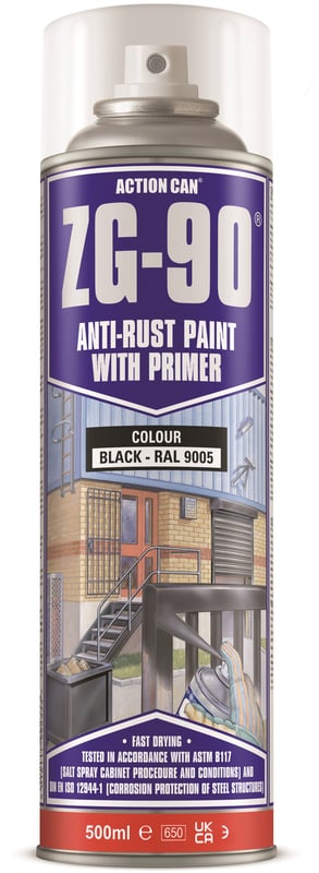 Description:ZG-90 cold zinc Galvanising spray is intended as a repair coating for newly galvanised metal that requires repair or recoating to match the original finish. The coating can be applied to bare metal, welded metal or slightly corroded metal. This superior product is incredibly fast drying thus improving job times and finish. Several light coats are advised and give better performance than one heavy coat. ZG-90 cold zinc Galvanising paint is matched to the colour of new galvanised surfaces making the product ideal for fences, security railings, roller shutter doors, gutters and duct work. ZG-90 is ideal for steel structures, off shore rigs, bridges, and automotive panels. Do not apply to the inside of potable water storage containers. Not to be used on food surfaces. This product contains zinc, aluminium fillers, solvents and surfactants. ZG-90 can be used as an undercoat or a topcoat. Drying time is 3 minutes for touch dry and 20 hours for hard dry (based on 20°C). ZG90 is shower proof in 5 minutes. AS SEEN ON DISCOVERY’S “WHEELER DEALERS”