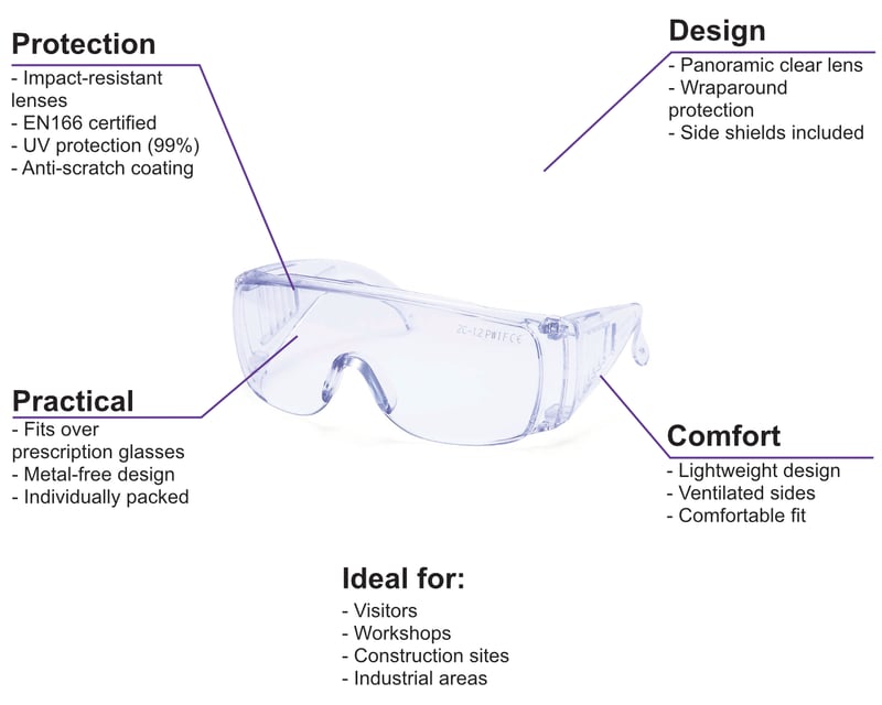 Excellent Protection - Tough Impact Resistant - Metal Free - Anti-Scratch - UV Protection - EN166.1.F EN 170.2C.1.2 ANSI/ISEA Z87