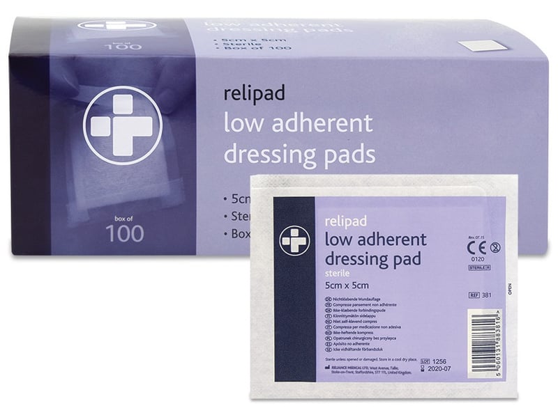 Relipad - Low-Adherent Dressing Pads - Sterile - 5cm x 5cm - Box of 100 - [RL-381-100]