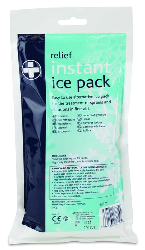 Easy to use, disposable ice pack for the first aid treatment of sprains and abrasions. On the spot immediate ice therapy, twist the pack and apply to bruising, sports sprains and muscle injuries.Features: